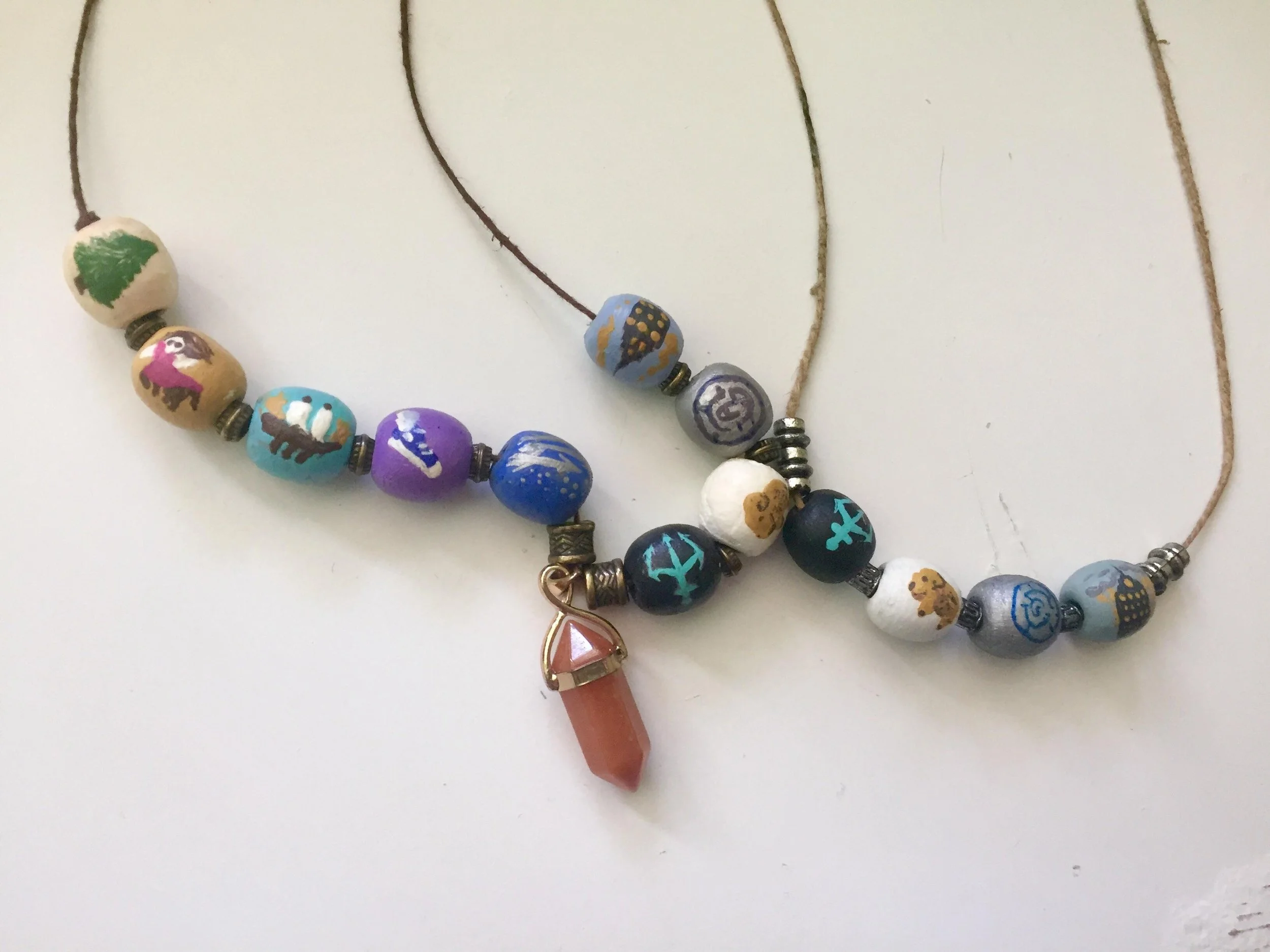You can make these beads yourself from clay or wood- I got wooden beads from Michael’s and sanded and painted them by hand.